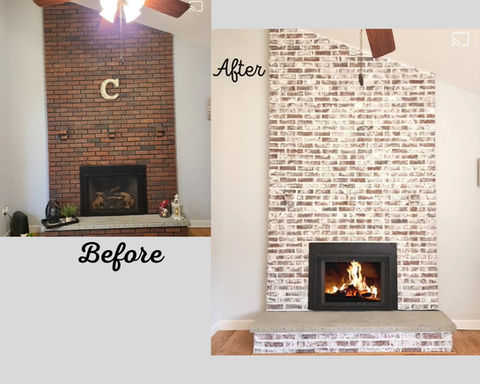 Watch this gorgeous makeover come to life with our brick stain distress technique! We used grays, black & hints of a custom blue to match the kitchen cabinets.